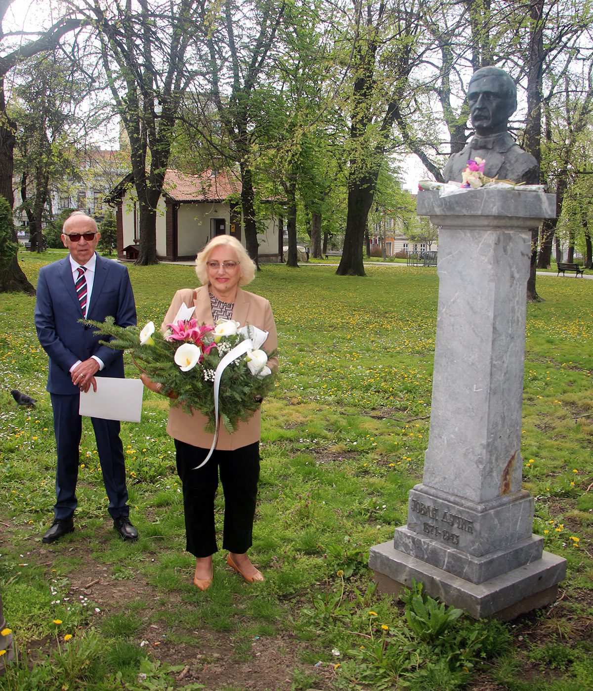 У име Удружења Требињаца, Весна Вуковић положила је цвијеће испред бисте Јована Дучића, док је Бранка Спаић Флегер положила цвијеће испред бисте Алексе Шантића.