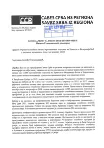 Обраћам Вам се као предсједник Савеза Срба из региона и народни посланик са захтјевом да Комесаријат за избјеглице у сарадњи са другим надлежним органима трајно ријеши стамбено питање око 12.000 прогнаничких породица из Хрватске и Федерације Босне и Херцеговине, као кључно питање интеграције, у разумном временском року и на праведан начин.