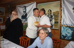 Након свечаног обреда ломљења славског колача који су служили протојереј ставрофор Илија Проле и протојереј Петар Ђукић дружење је настављено у братској атмосфери, уз музику, пјесму и подсјећање на завичај и коријене.