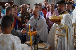 „Ово је дан наше радости и сусретања у молитви, вери и делима нашим са Господом. Данас се сећама разговора Св пророка Илије са Богом када је тражио од Бога помоћ како да се народ избави и оплемени и почне да чини добро. Бог нам дарује много тога доброг, али ако не препознамо дар божији онда може да дође и казна, да изгубимо оно што имамо да бисмо почели да ценимо његову вредност. Тако је у време пророка Илије стала киша, затворио је небо за три године и шест месеци, да људи знају која је вредност те кише и ко је шаље, да знају која је вредност онога што нам земља даје, да знамо ко је тај дародавац и када се људи поправе онда Свети Илија тражи да се небо отвори и падне киша и награди се народ. Данас имамо у изобиљу свакога добра, али чује се људски јаук где се жалимо и како нам стално нешто није добро. Нека чује Бог да смо захвални, кажимо хвала Господу на здрављу и имању“, поручио је ставрофор Гавро Милановић честитајући свима славу уз речи да молитве свих присутних чује и услиши Св. Илија, а новим кумовима славе за следећу годину председнику Црквеног одбора Саши Бјелајцу и свештенику Владимиру Милановићу, честитао је на избору.