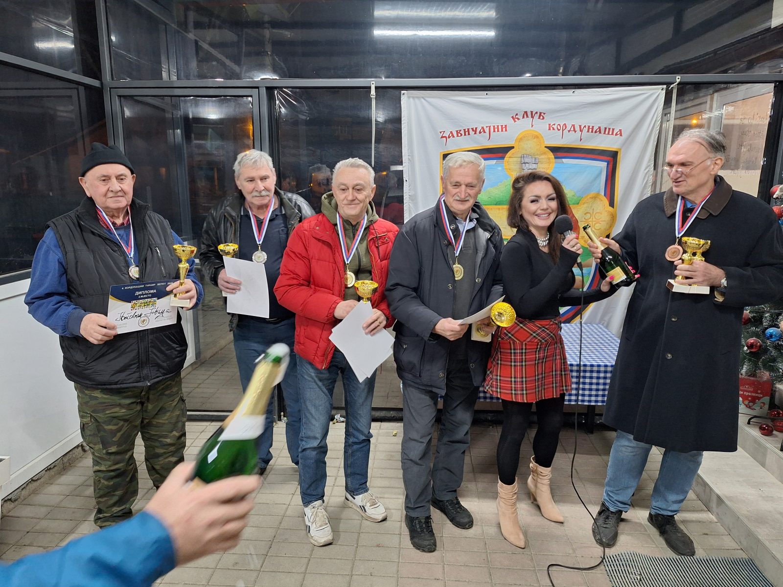 Шампионима је власник ресторана Богдан Олуић из Зеленграда код Обровца уручио пет литара домаћег далматинског вина из сопствене производње.