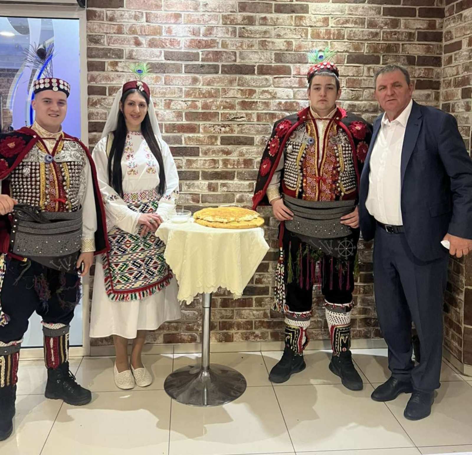Гостопримци у традиционалној, врличкој ношњи – Никола Милаш (пореклом из Цетине), Сузана Смиљанић (пореклом из Цивљана) и Василије Шкрбић (пореклом из Гарјака), као и један од организатора Милан Цвитковац (пореклом из Маовица)