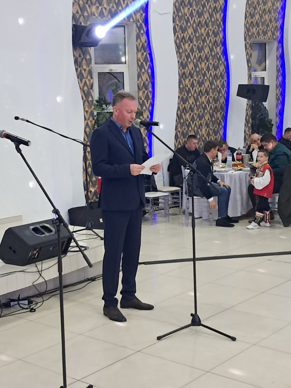 А у сали много радосних тренутака сабраних, расположених Врличана – прелџија који се дуго нису видели и перманентно ширење позитивне енергије. Без водитељске најаве, жамор гостију, прекинули су звуци дипли – извођача Милана Миће Утржена, пореклом из Уништа. Он је научио да користи дипле још као дечак док је на планини Динари чувао овце, а у зрелом животном добу се определио да израђује рукотворине од дрвета – највише гусле. Утржен је диплио у ходу по целој сали и на тај начин вратио мисли присутних ка родној груди у Далмацији.