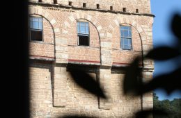Пењемо се на врх пирга и разгледамо невјероватну љепоту природе хиландарског имања у правцу према виноградима, маслињацима, пристаништу, старом манастиру Светог Василија – Хрусији и цркви Вазнесења.