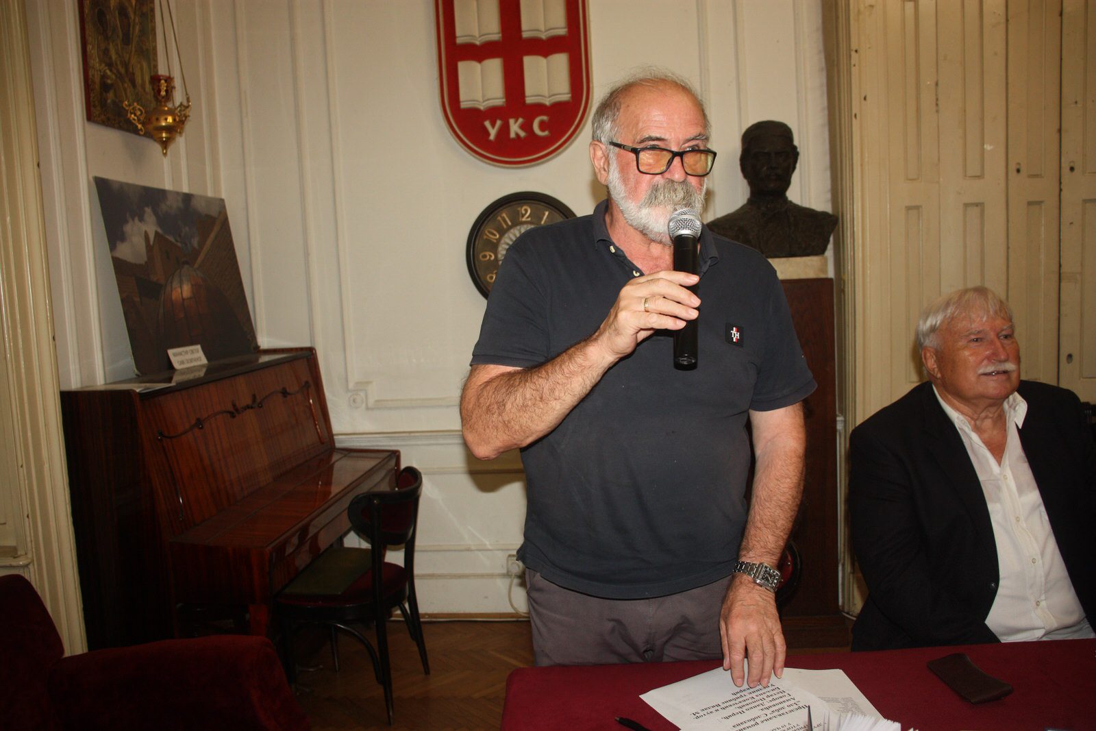 У Удружењу књижевника Србије (Француска 7) 23. септембра промовисан је нови роман сликара и писца Слободана Амановића Зло доба.