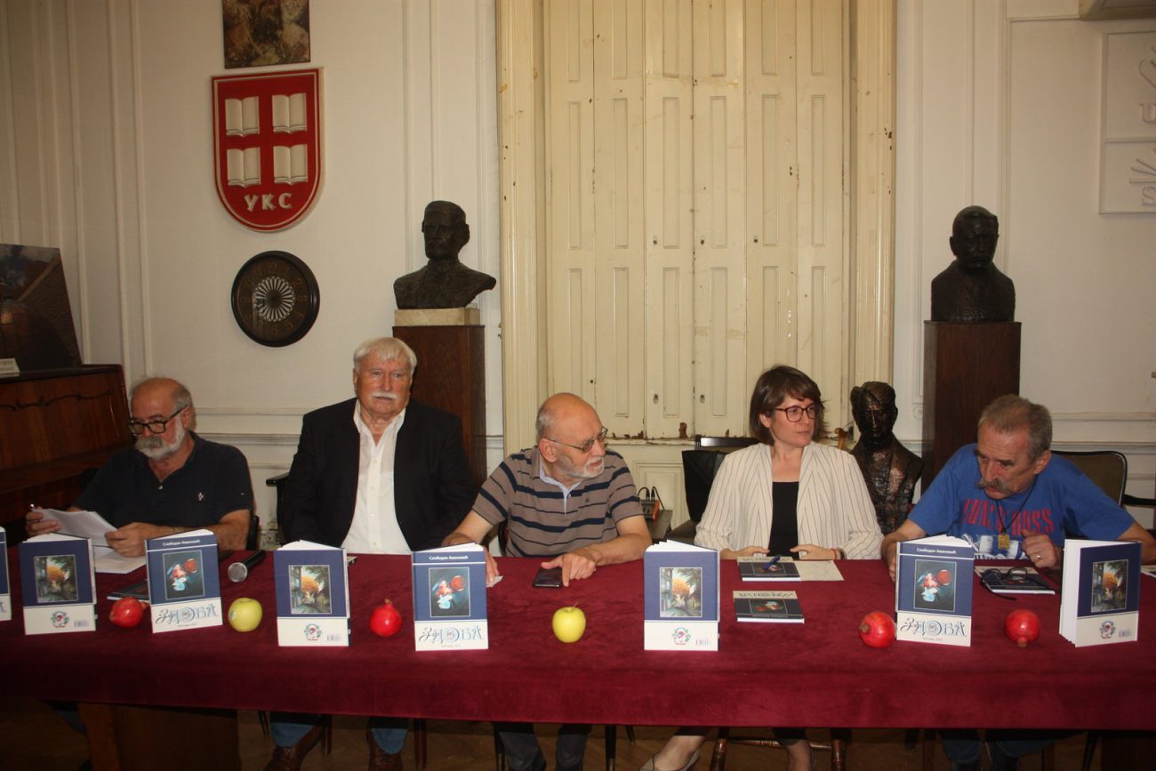 У Удружењу књижевника Србије (Француска 7) 23. септембра промовисан је нови роман сликара и писца Слободана Амановића Зло доба.