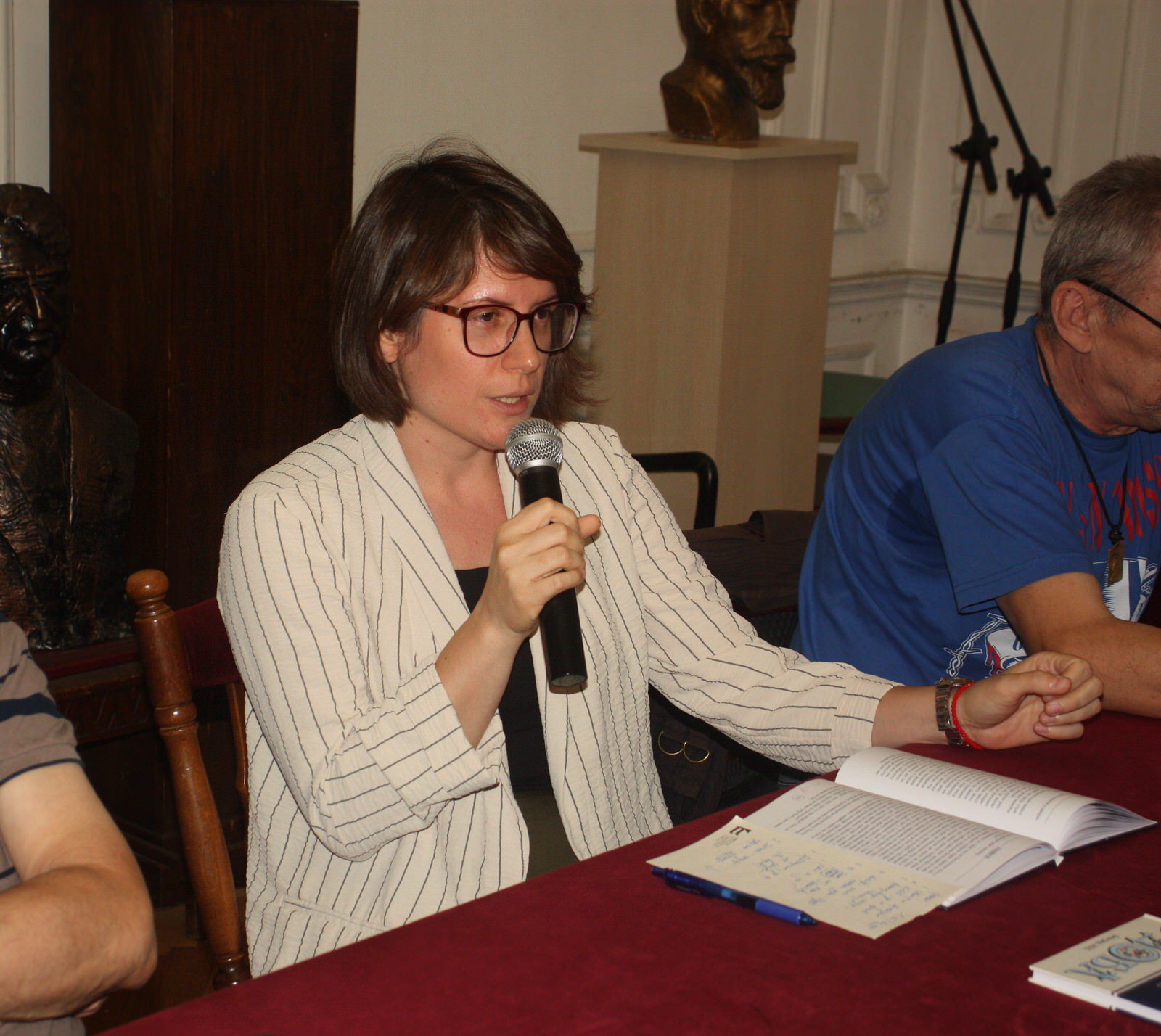 – Оно што је написано у књизи није потпуно истовјетно оном што сам пронашао у литератури. Наш чувени професор који је завршио Богословију могао је у книнској Гимназији и у било којој другој школи да предаје било који предмет и без припреме, знао је да пренесе знање на један такав начин да је то било невјероватно. По својим интелектуалним сазнањима, и по ономе што је он могао и знао, могао је да буде богословски професор, универзитетски професор, али „зла коб“, односно зло доба, учинила су да је послије завршетка Другог свјетског рата у војним магацинима било одржано јавно суђење на којима је професор Вукадин био оптужен за колаборацију са Равногосрским покретом. И дијелу текста о професору Вукадину пише да је у том моменту изашла из масе младолика жена која је више изгледала као дјевојка, него жена. Одржала је такав говор да се то касније препричавало у Книну, али не онако у сав глас. То је била Јованка Чоловић, која је била професорица касније нама у Гимназији, и која је рекла да овог човјека (Вукадина) не само да не треба осудити, него га за све његове заслуге треба наградити. У овом роману се помиње у контексту његове жене, да је она била та која му је спасила главу. То ново сазнање ми је поесбно драго јер нисмо имали мишљење о нашој професорици да је толико храбра.